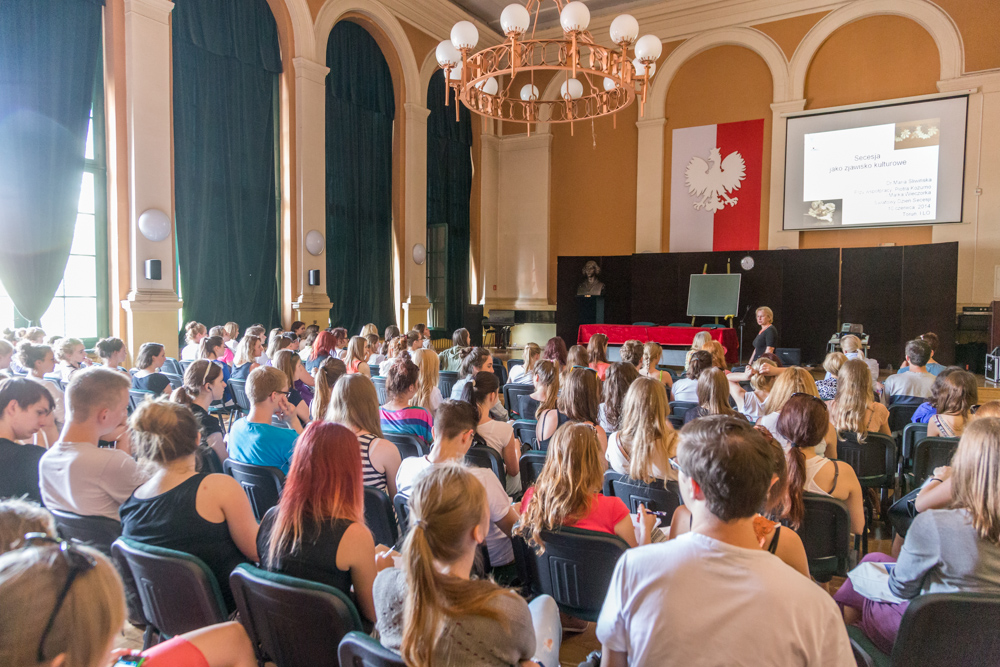 The Art Nouveau World Day celebrations in Poland were met with great enthusiasm on the part of visitors participating in the programme organized by ICIMSS in cooperation with the Best-highschool in Torun. About 150 young people took part in an Art Nouveau quiz; each good answer was awarded an issue of Uncommon Culture. In a lecture dedicated to "Art Nouveau as a cultural phenomenon" stunning photographs of Art Nouveau objects and architecture were shown, among them also three pictures of artworks created by Ödön Lechner. The opening of the new exhibition "Art Nouveau architecture from kujawsko- pomorskie region" completed this wonderful day full of Art Nouveau.